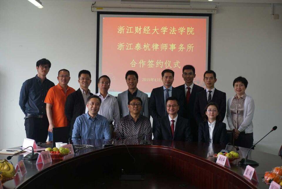 2015年4月29日上午9:00,浙江泰杭律师事务所与浙江财经大学法学院战略合作签约仪式在法学院301会议室正式举行。财经大学法学院将设立浙江泰杭律师事务所律师培训基地,泰杭律师事务所将设立财经大学法学院实训基地。