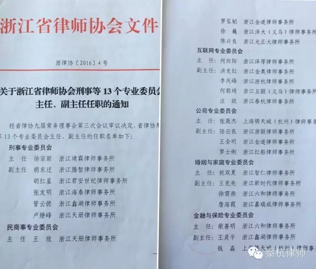 新春伊始,泰杭捷报连连,近日,浙江省律师协会第九届常务理事会第三次会议审议决定,聘任浙江泰杭律师事务所主任汪政律师为浙江省律师协会互联网专业委员会副主任,能在众多行业精英中胜出,无疑是对汪政主任能力的最大肯定和褒奖。