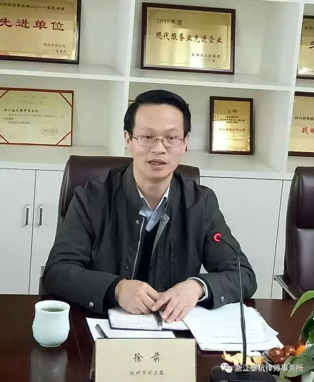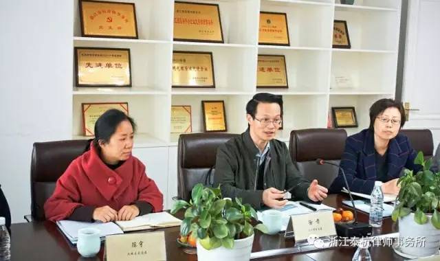 2016年12月9日上午,杭州市司法局徐前副局长一行莅临浙江泰杭律师事务所,就浙江省“名所名品名律师”三名工程建设指导工作。