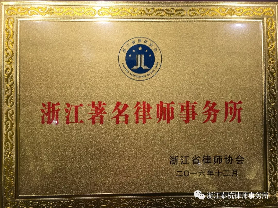 2月泰杭荣获“浙江著名律师事务所”荣誉称号